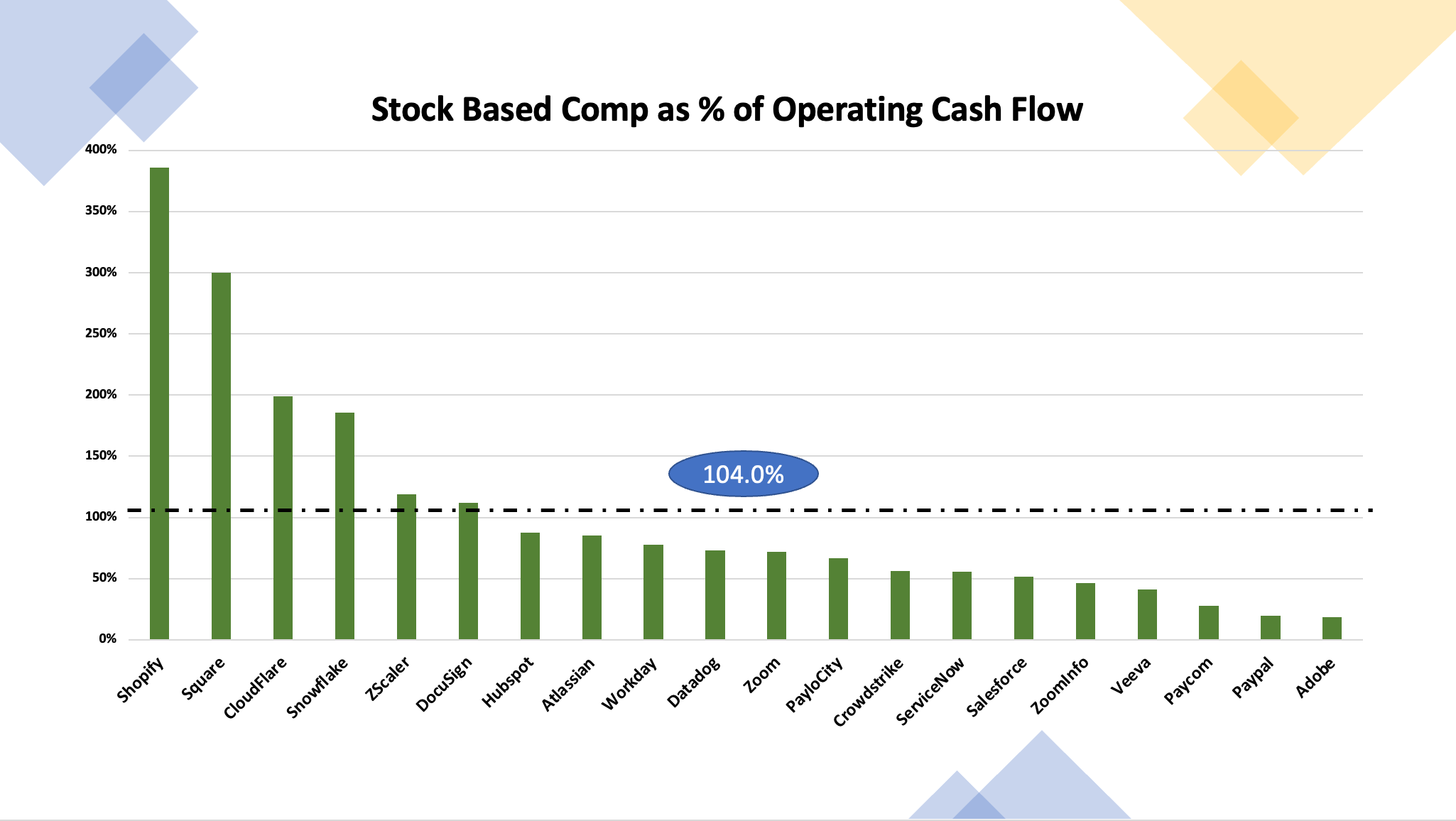 In simple terms, when a company pays part of an employee's salary in stocks, it artificially increases the cash flow, as the cash never leaves the bank. However, this expense gets accounted as part of the salary in the P&L statement. A higher than usual stock-based compensation (SBC) is a consistent trend among most SaaS firms.