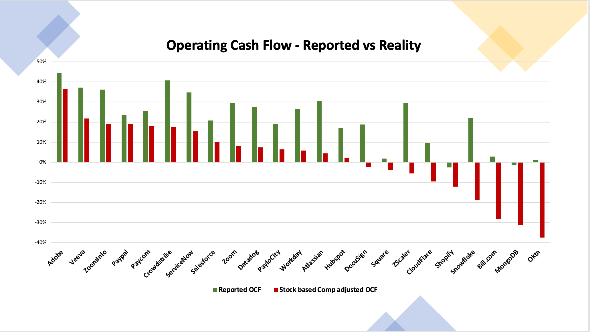 To add insult to the injury, stock-based compensation is more than 100% of the reported OCF - effectively eroding all the money they reportedly made for most of these companies.